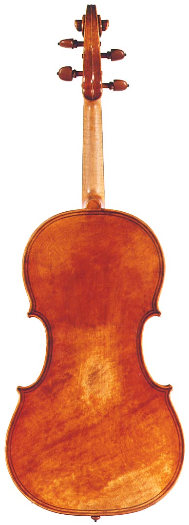 | I'm very pleased and proud to be able to report that one of my recent violas was awarded the Gold Metal for viola at the Violin Society of America's 1996 competition last fall. To win the gold medal an instrument must be judged outstanding in both tone and workmanship. This instrument is currently offered here on Maestronet by John Waddle. The model is inspired by the Brecian Masters, but incorporates a modern understanding of viola ergonomics. That's just a fancy way of saying that it's real playable. I am making a limited series of violas of this pattern. Each will be an individual creation, with it's own personality. The model is 16 1/2", and I also build a great sounding 16 1/4" model You can email me or call for more information. | ||
